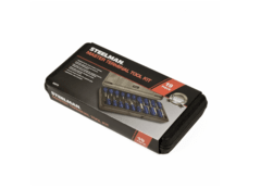 Los mangos de cada herramienta se encuentran identificados para no perder tiempo. Viene aparte una tabla impresa con la caja.